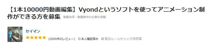 それに、今クラウドワークスでもvyondが使える人の需要が高まっていて、報酬単価がものすごくいいです。