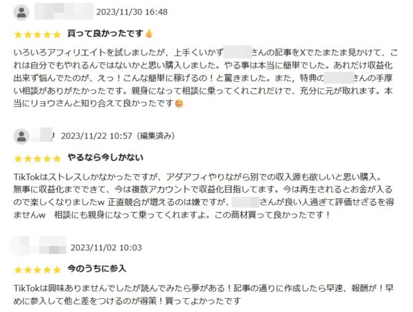 だから、高評価と素晴らしい感想を送っている人たちは、まちがいなくサクラですし、きっとただ同然でノウハウを手に入れたのでしょうね。