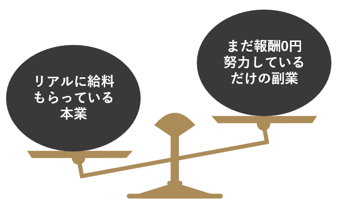 何かと理由を作って作業をしなくなると、天秤の「本業」のほうに重要性を感じるようになり、ついには諦めてしまう、もしくは別の副業を探し始めることになります。