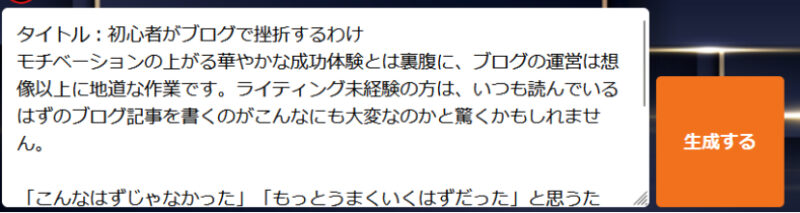 出力文字数は3000~5000文字で、コブラよりも少ない(コブラは5000文字ほど)ですが、補足してコンテンツのボリュームをアップさせることができるので、特に不便は感じないと思います。