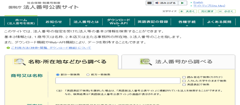 国税庁法人番号公表サイト 法人登録しているかどうかチェック!