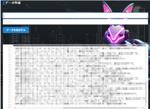 このデータ作成というところに、特化したい内容、カスタムしたい内容を質問形式で大量に入力していくことによって、カスタマイズされたラビットXが出来てきます。
